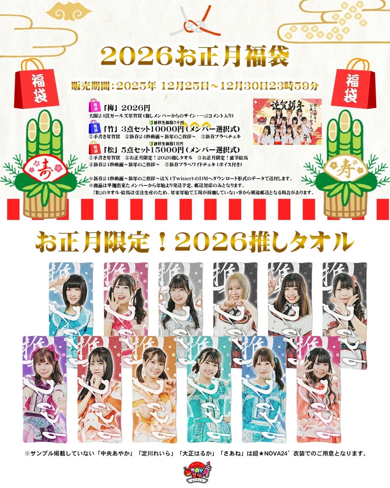 ※商品は準備出来たメンバーから年始より発送予定。郵送対応のみとなります。松商品のタオルが年末年始で工場が稼働していないためタオルのみ別途郵送となる場合があります。