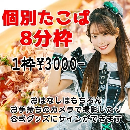 ーーーーーーーーーーーーーーーーーーーーーーー 【たこぱライブ】にて予定されている『個別タコパ』♡あなたの推しメンと一緒に楽しいひとときを過ごしませんか?(^^)/ 個別タコパのスペースは限られているため定員を設定しており、先着順での締切とさせていただきます★
